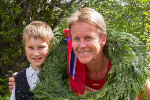 I dameklassen var det Ann Sissel Vehus, Verdal FIK, som vant med tiden 37:00. Her sammen med kransgutten Trond Kristian Haugan.