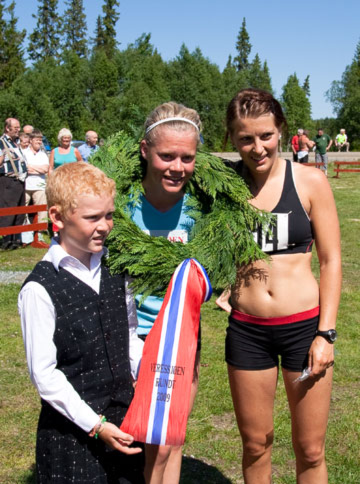 Kristin Gausen, Inderøy, var raskest i årets dameklasse med tiden 35:03. Her sammen med Mari Riseth Guin, Frol, som var nest best og kransegutten Ole Einar Julnes.