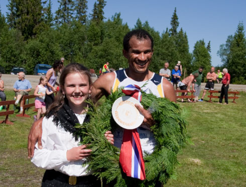 Carlos Silva de Brito var nok en gang best i herreklassen. Han kom i år inn på tiden 56:49. Her er han sammen med kranseveitja Guro Lise Leirset.